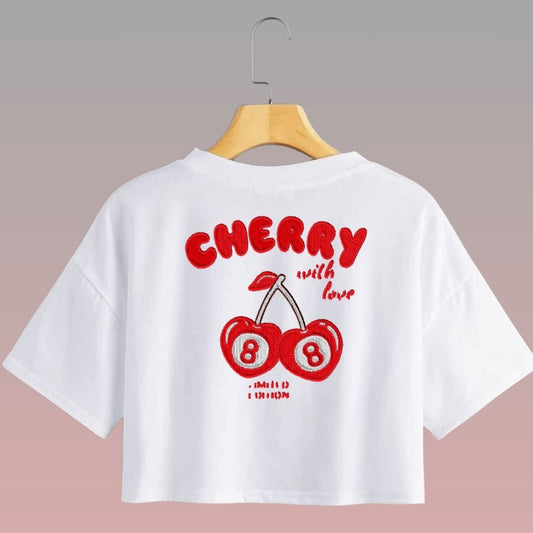 Crop Top Manga Corta Cherry 8 Con Efecto Bordado