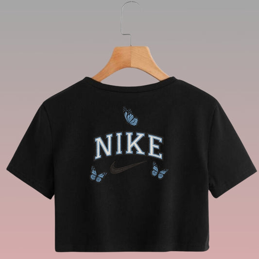 Crop Top Manga Corta Nike Diseño Mariposas Con Efecto Bordado / Blanco
