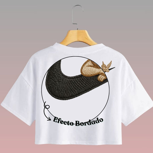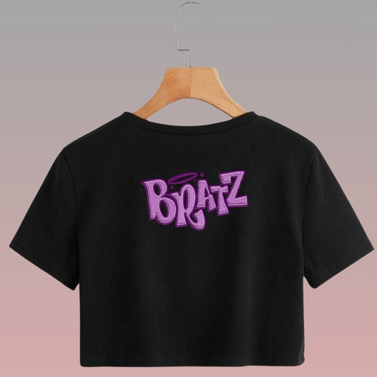 Crop Top Manga Corta Bratz Estilo Bordado / Negro
