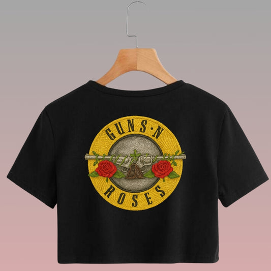 Crop Top Manga Corta Gun’s and Roses Estilo Bordado/ Negro