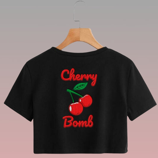 Crop Top Manga Corta Cherry Bomb Estilo Bordado/Negro